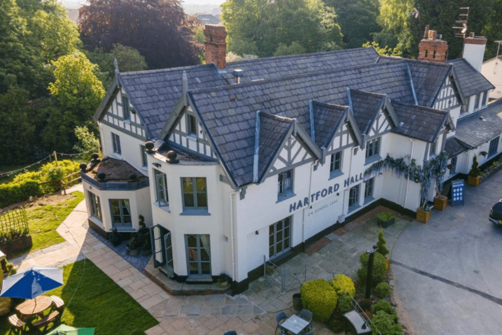 Hartford Hall Hotel is a charming historic hotel in Cheshire, offering a blend of modern comfort and traditional character. Set in a former 17th-century manor house, it features cozy accommodations, a welcoming pub, and a picturesque setting perfect for a relaxing stay.